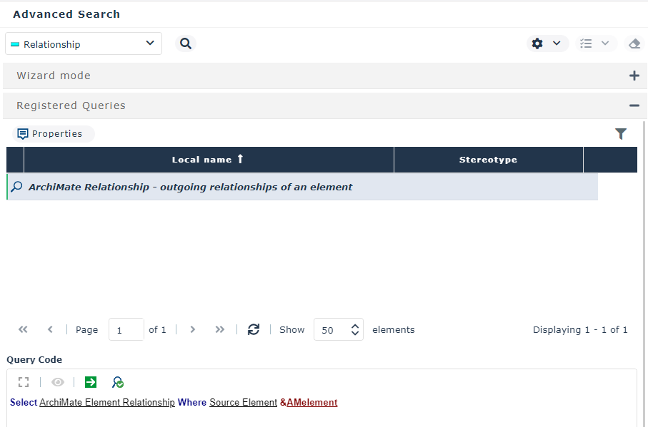 4. Define the "ArchiMate - element through outgoing relationships" query as the Query to be used.