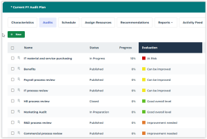 In the list of audits of an audit plan, you can consult the evaluation of the audit that has been made by the lead auditor. You can sort audits based on this criterion, allowing you to create audits on appropriate entities, risks, process categories/processes.