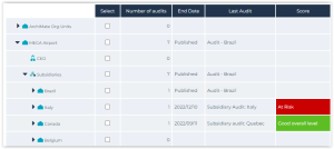 • sort audits by score/assessment or find the audits that have not been executed.