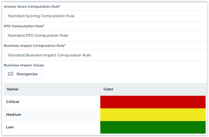 You can weight each impact type. Weights are used by the algorithm to compute the RTO (Recovery Time Objective) and the business impact.
