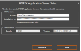 The message “HOPEX Store settings are valid” appears if the key is correct.