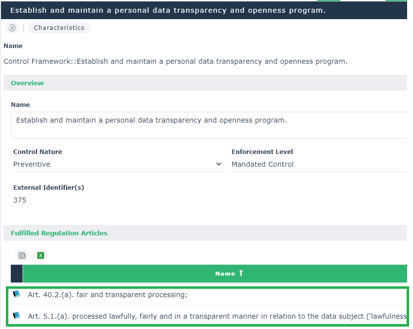 Regulation Articles section of a control directive. It means that your control directives enforce compliance of your organization to several regulation articles.