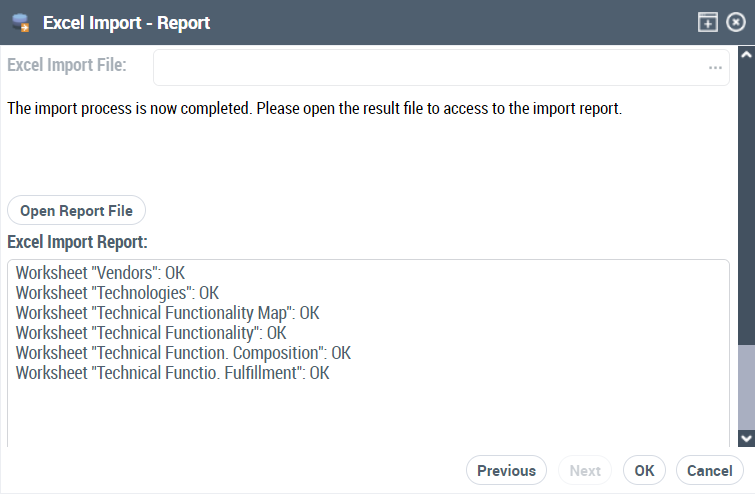 4. In the filed Predefined Template File select Technologies Functionality Template if you want to import on the technology Excel template.