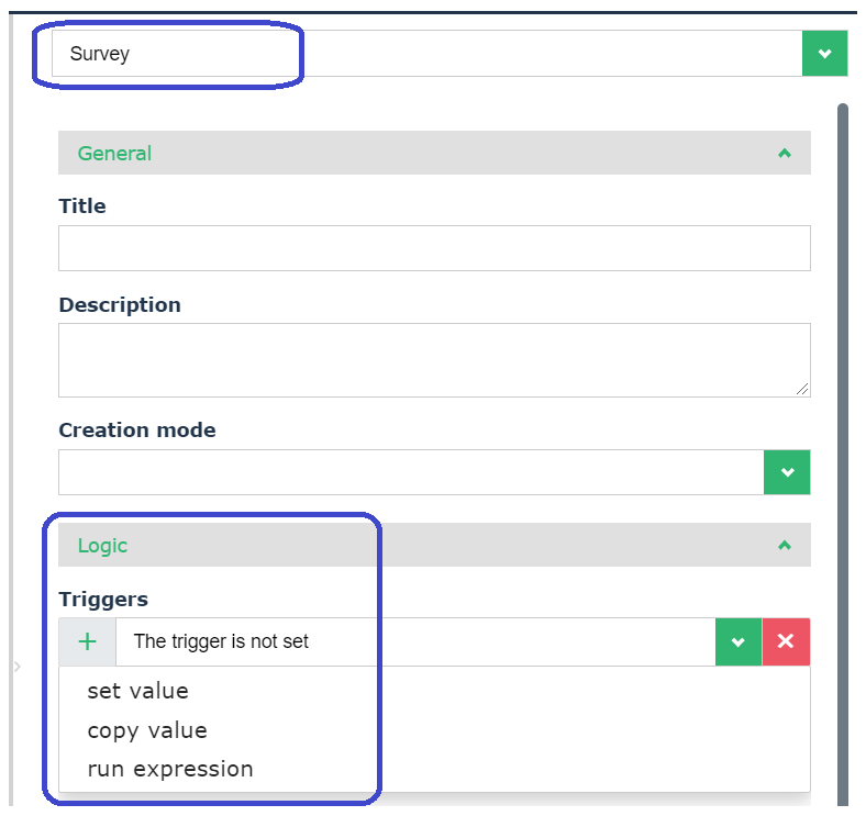 The Logic section enables you to define triggers. A trigger is a mechanism that enables you to define conditions and an action, which is triggered if the conditions have been met.