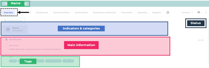 An object card can also display more details. In this case, it corresponds to the Overview page of an object property pages. This page opens by default at the opening of the object property pages. A card Overview displays in read-only mode, you can not operate any modification on it. It is organized as follows: