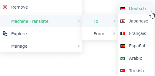 2. Select the command Automatic translation > To and select the target language.