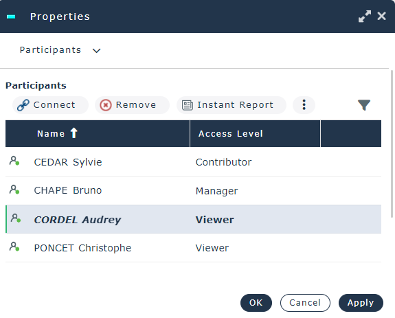 The person is added to the list of participants of the collaborative workspace with a Read only access level.