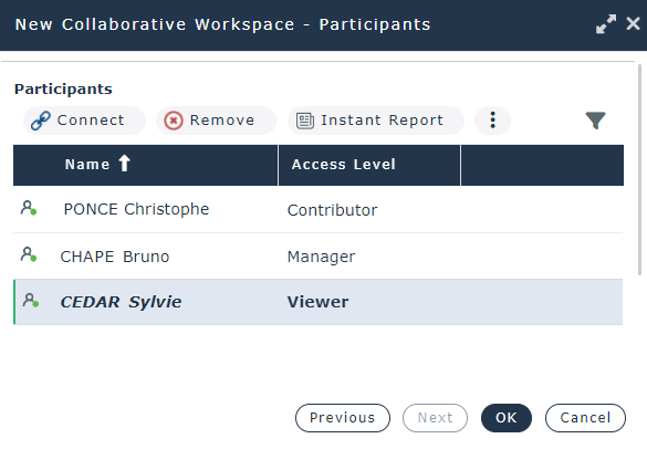6. (If needed) To change the access level of a participant, in the Access Level field of the person, select another access level.