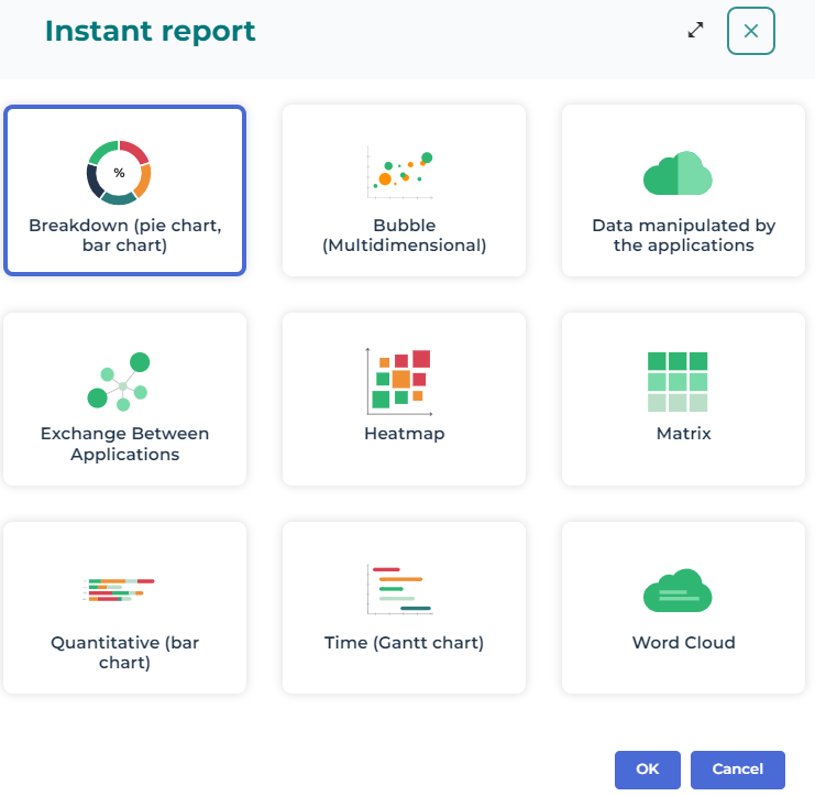 By default, the breakdown chart appears in the form of a pie chart; click on another type.