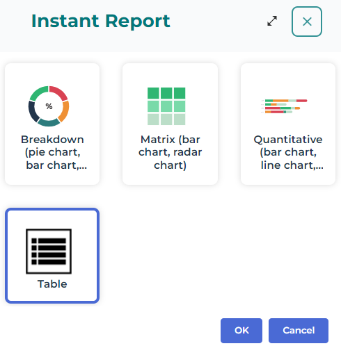 • a quantitative-type instant report, select information to be taken into account in the chart display.