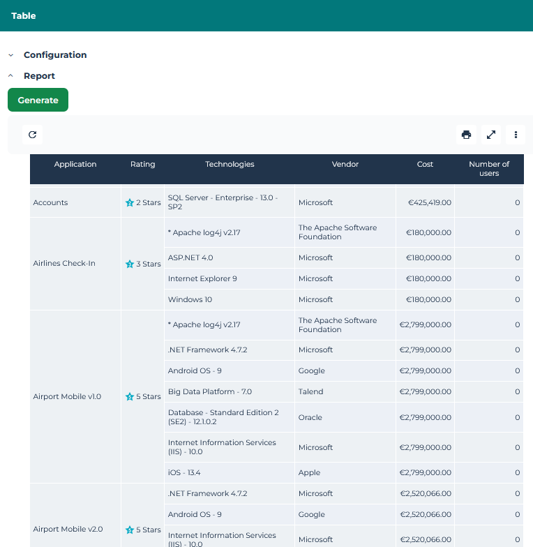 E.g.: from a Report DataSet with “Application Technologies” definition, whose input parameters are applications.