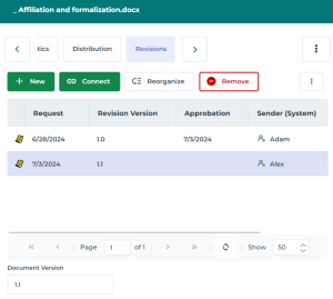 In the report MS Word properties, the Revisions page enables to indicates the date and sender of the revision request as well as the version number.