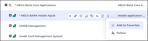 In a tree, when you hover the cursor over an object row, a list of buttons pops up: