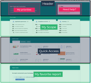 Your homepage is made of customized and customizable elements. The information contained in My scope are auto-generated from your repository data.