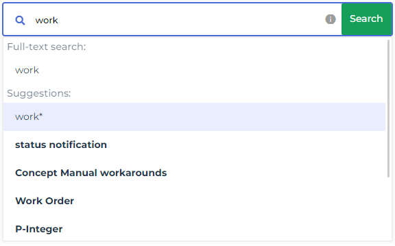 3. In the edit area, in the Search field, enter the term or the first few letters of the search term to display a list of matching terms.