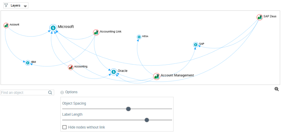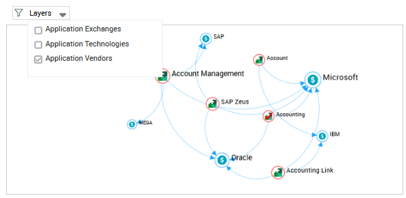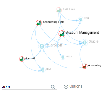 For example, enter "acco": "Account", "Account Link" and "Account Management" applications and "Accounting Technology" are highlighted (all of the other nodes are grayed out)