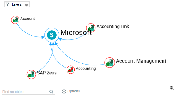 • In the Find an object field, enter characters to greyed all of the other nodes.