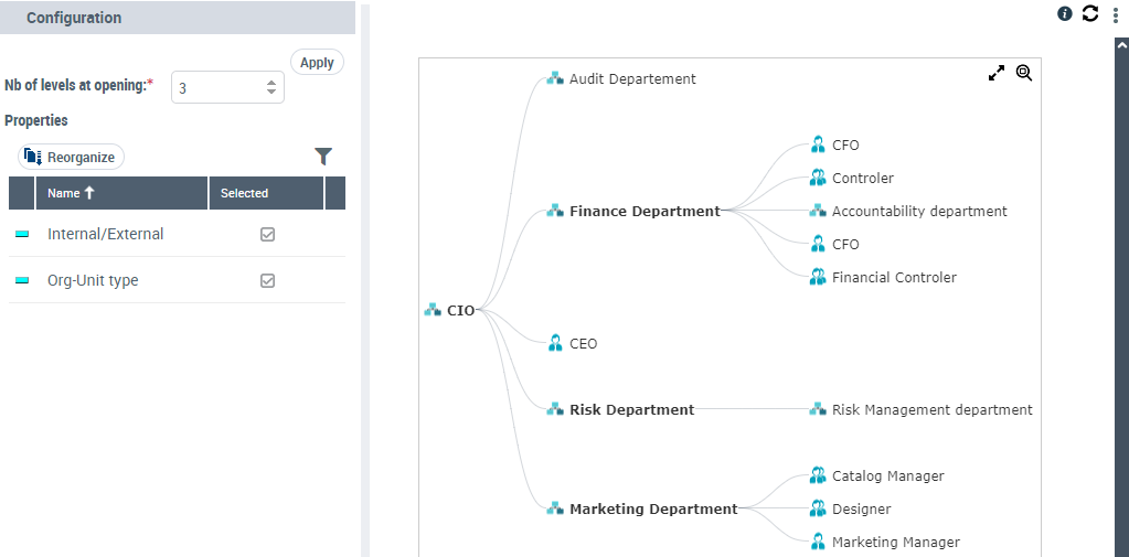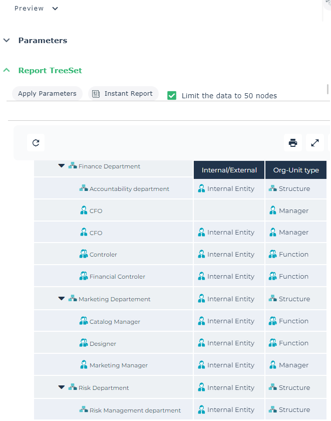 Ex.: this TreeSet is based on the CIO Org-Unit and displays for each Org-Unit child its Internal/External and Org-Unit Type values.