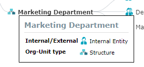 Example: hover the cursor over "Marketing Departement", its "Internal/External" and "Org-Unit Type" values are displayed in a pop-up window.