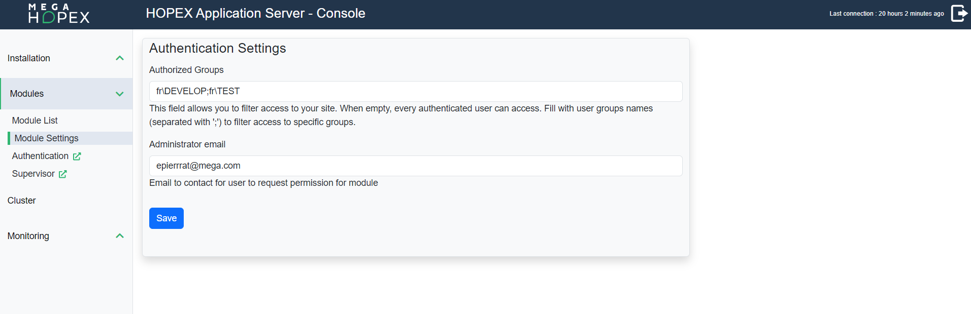 4. In the Administrator email field, enter an email address that unauthorized users can use to request access.