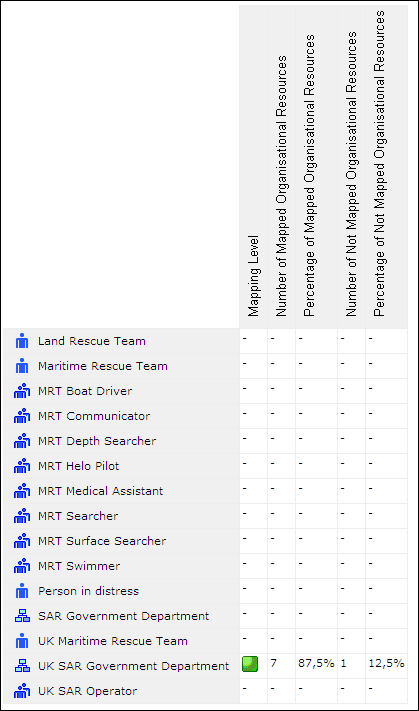 This chapter gives an overview of the mapping levels that exist between org-unit types and the actual organizational resources (org-units). It also gives the percentage of mapping compliance between the types and actual org-units.