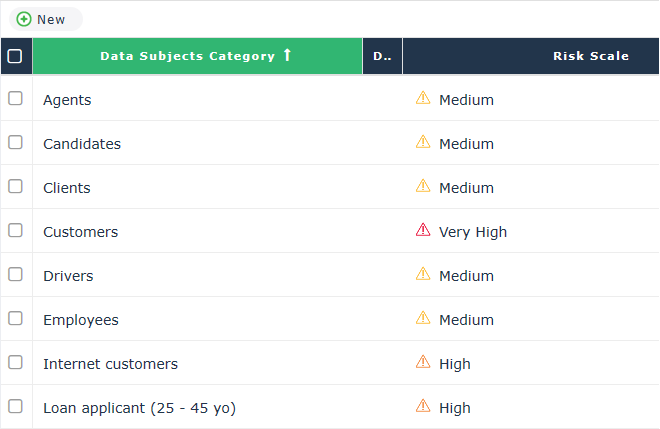 1. In the navigation menu, click Key elements > Data Subject Categories.