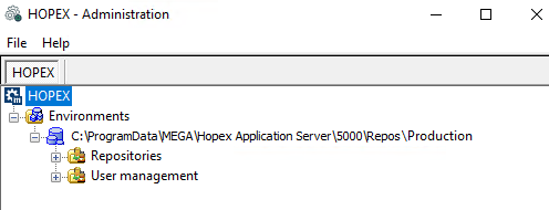 E.g.: C:\ProgramData\MEGA\Hopex Application Server\5000