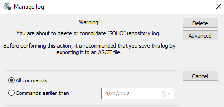 You can delete log elements more specifically: you can delete only log elements relating to specific MetaClasses, earlier than a selected date.
