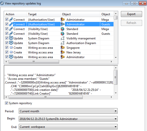 3. Select (/Clear) System Repository to display the system repository (/HOPEX repository) updates.