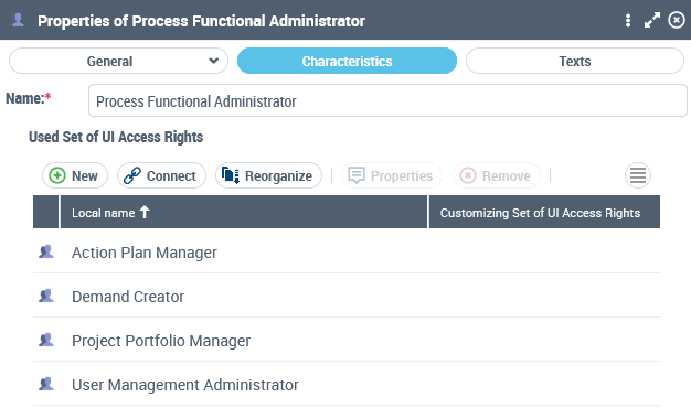 The permission of Process Functional Administrator (Custom) on the Org-Unit MetaClass is inherited from the Set of UI Access Rights Project Portfolio Manager: CRUDS.