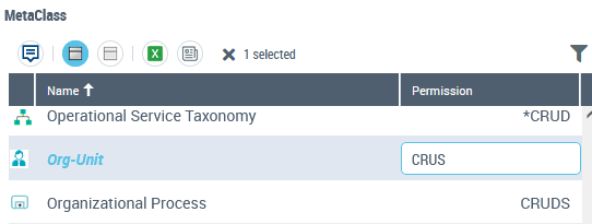 The permission of the Org-Unit MetaClass is CRUD, the command line of the Process Functional Administrator profile for the Org-Unit MetaClass is not restrictive: CRUDS.