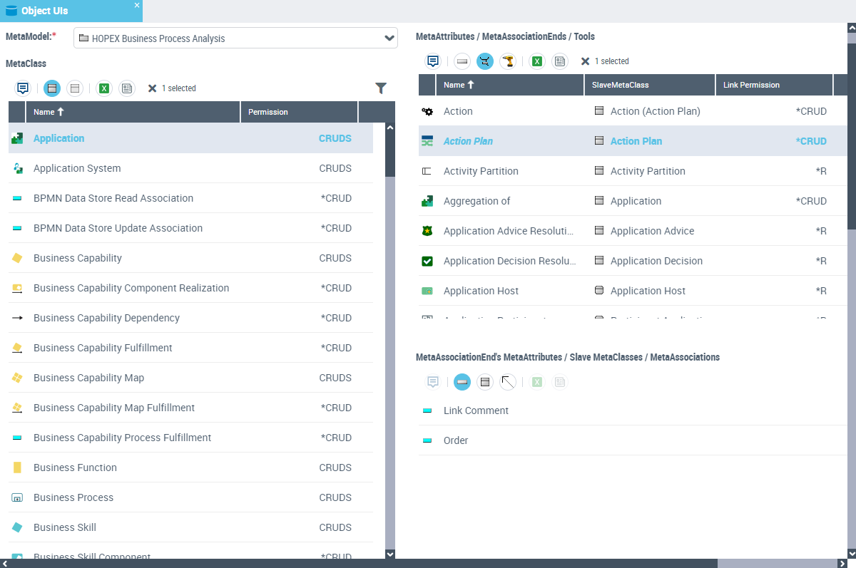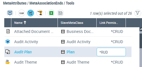6. Select the MetaAssociationEnd for which you want to modify link access permissions.
