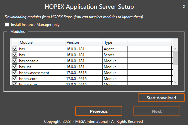 Enter your Installation key obtained from the MEGA HOPEX Store