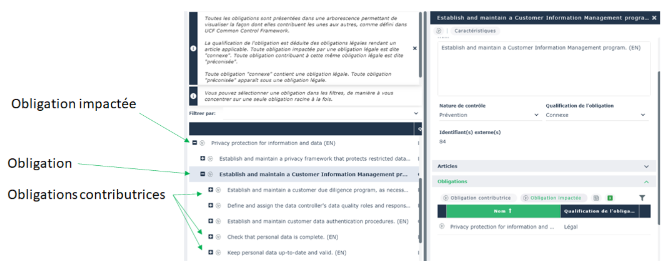 Les obligations correspondent aux Common Controls importés d'UCF. Pour plus de détails, voir