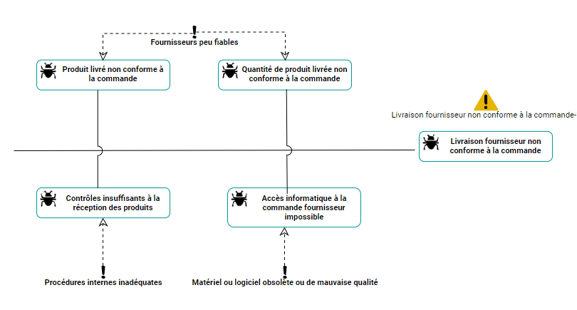 Dans l'exemple ci-dessus, on analyse les causes possibles du risque “Livraison fournisseur non conforme à la commande”.