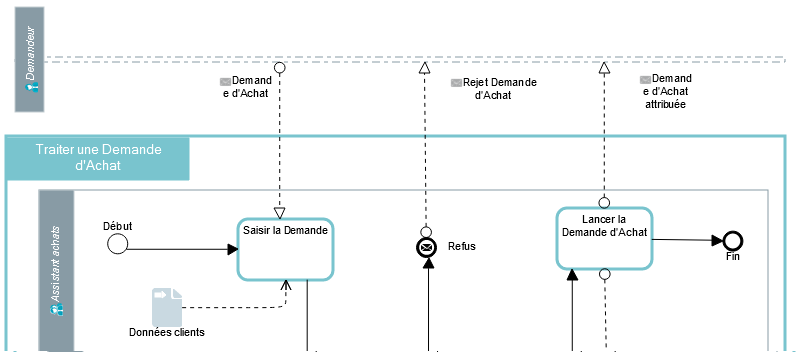 Il est possible de préciser le contenu des flux échangés avec l'extérieur du processus.