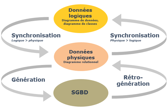 Créer, à partir de ce diagramme, les tables d'une base de données, avec ses colonnes, index et clés ainsi que les dessins du diagramme relationnel correspondant. Voir Synchroniser les modèles logiques et physiques.