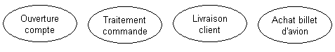 Exemples de cas d'utilisation : traitement d'une commande, livraison d'un client, ouverture d'un compte, envoi d'une facture, établissement d'un crédit, achat d'un billet d'avion, etc.