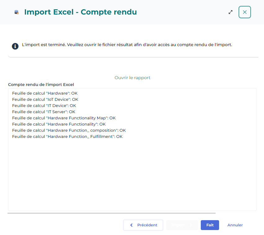 5. Pour obtenir un rapport détaillé des erreurs d'import, cliquez sur le bouton Ouvrir le rapport.