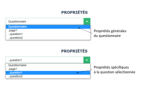 • les propriétés du questionnaire (qui s'appliquent à toutes les questions)