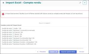 • Importer quand même pour que les données sans erreur soient importées dans HOPEX.
