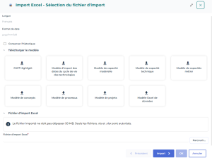 Télécharger le fichier d'import dans HOPEX