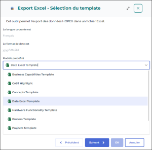 Pour exporter des données vers Excel, vous pouvez choisir d'utiliser un modèle différent de ceux proposés en standard.