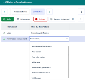 6. (En fonction de votre profil) Cliquez dans le champ Rôle du destinataire et à l'aide de la liste déroulante sélectionnez le rôle que joue chaque destinataire.