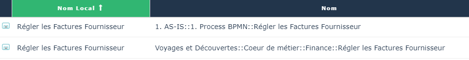 Ex. : lorsque plusieurs processus organisationnels portent le même nom, vous pouvez le choisir selon le contexte recherché.