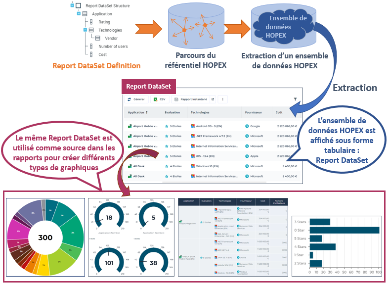 Un Report DataSet est créé à partir des objets du référentiel HOPEX.