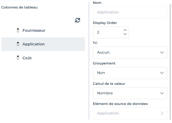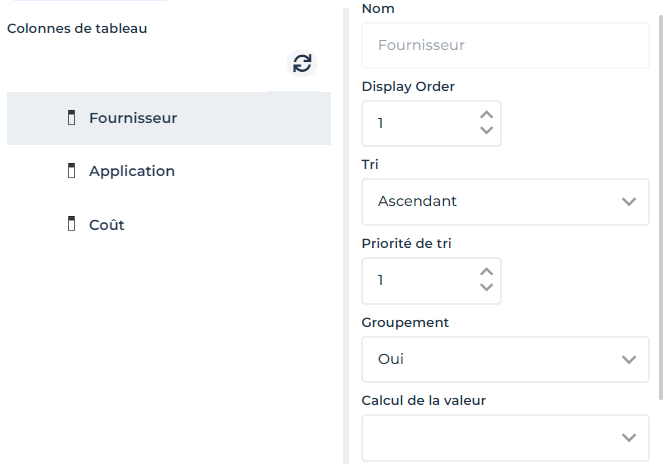 Exemple 2 : définition des colonnes (affichage, ordre) et calcul de valeur