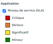 Ex. : Le nom des applications a pour couleur de fond la valeur du niveau de service (SLA) de l'application.