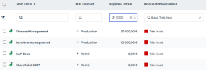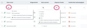 Par exemple, sur la liste des applications, vous pouvez filtrer les applications dont: