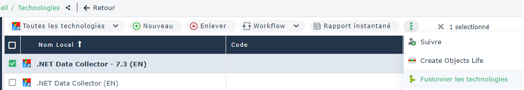 3. Dans la barre de menu de la liste, cliquez sur Plus > Fusionner les technologies.